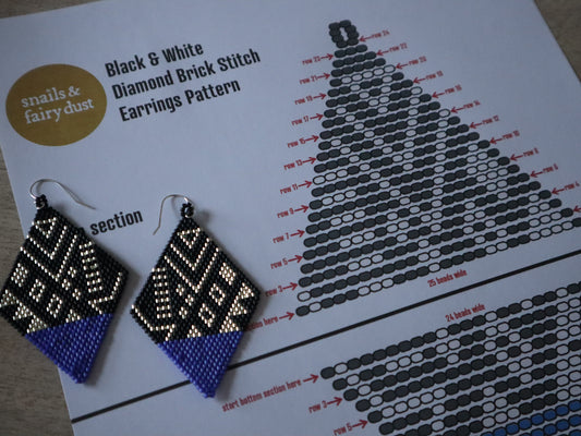 Black & Silver Diamond Seed Bead Earring Pattern - Digital Download