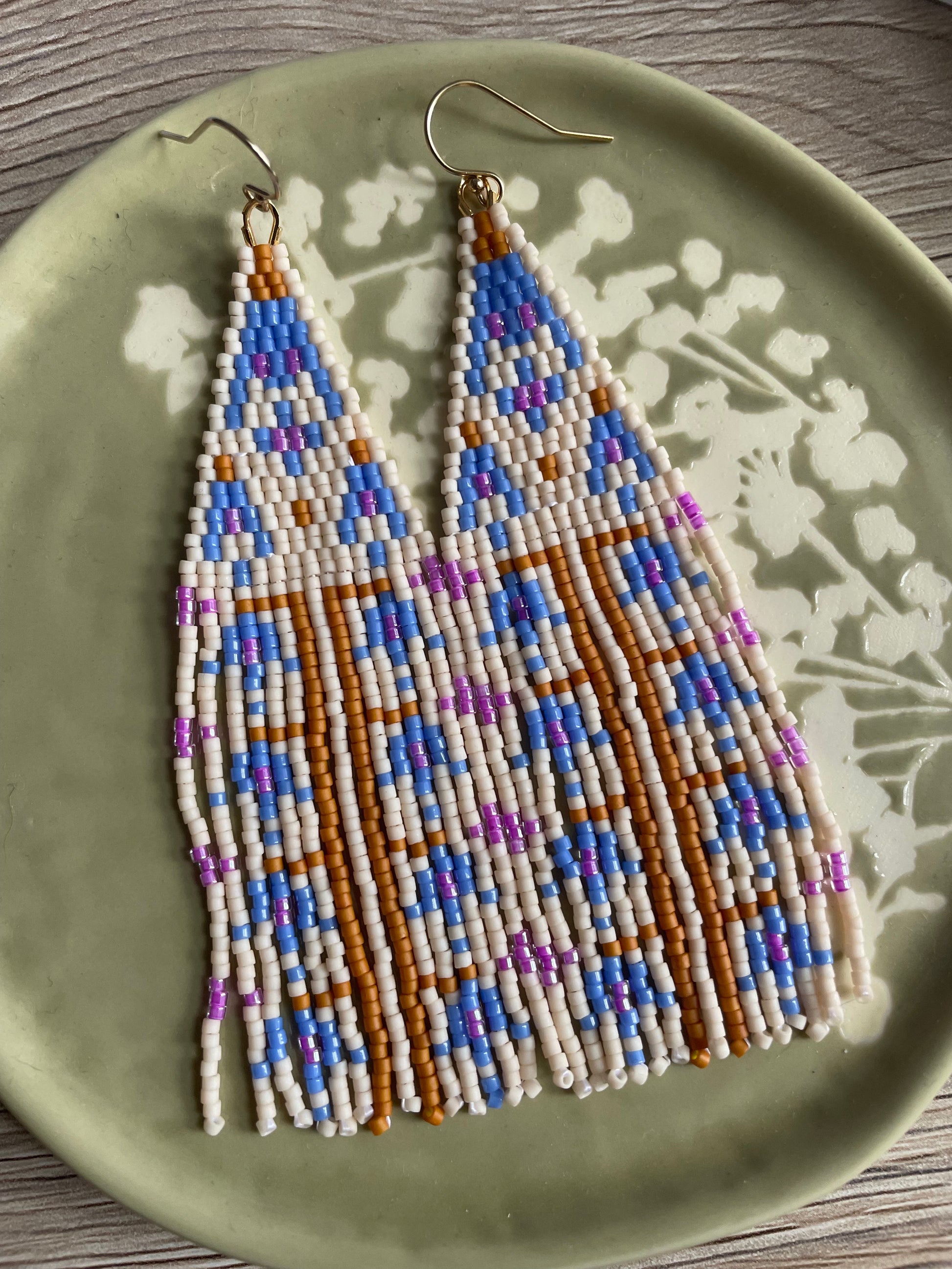 Blue Bells Beaded Fringe Earring Pattern - Instant Download PDF