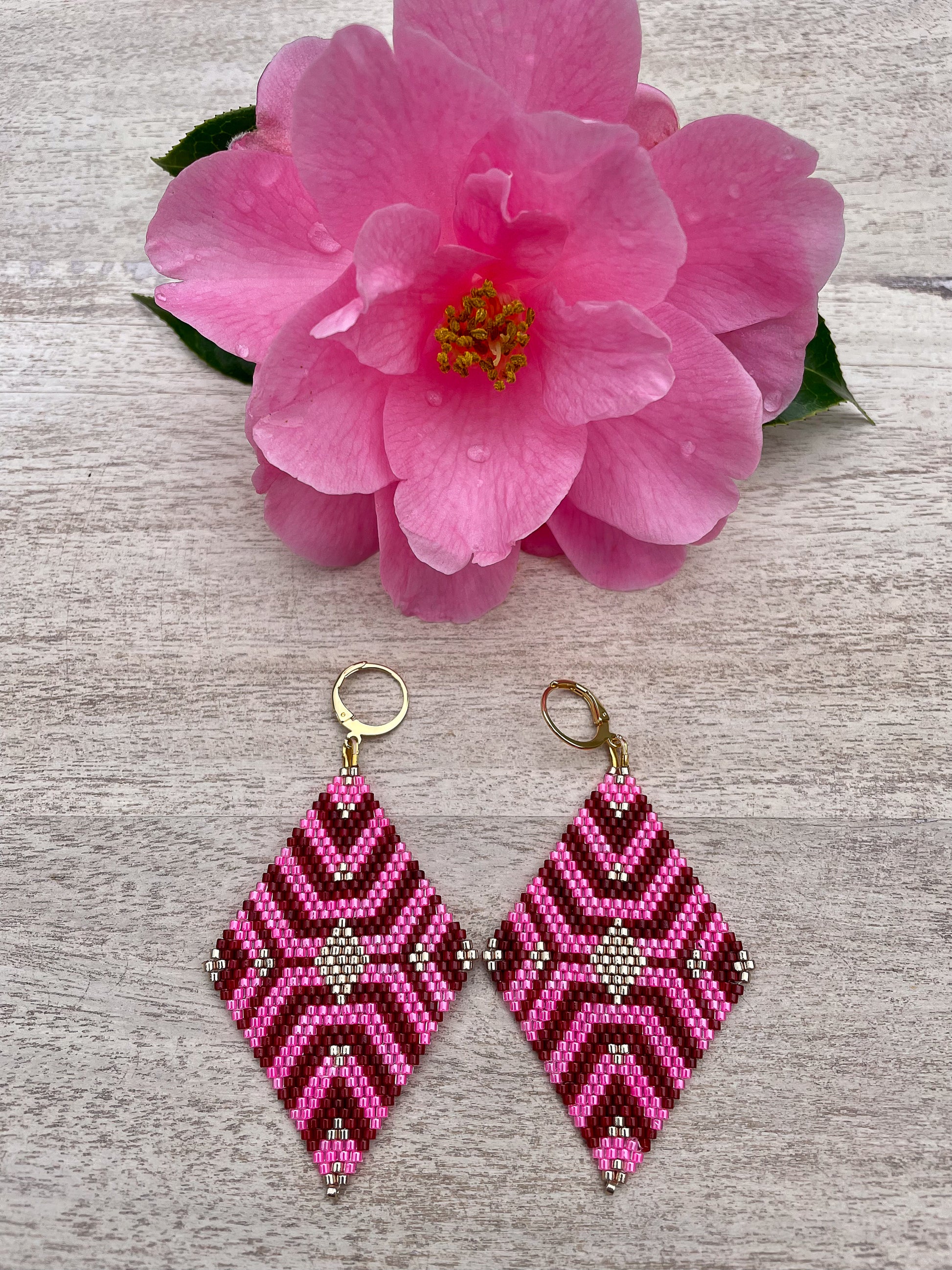 This listing is for a digital pattern of my original beaded earring design called Camellia Season.