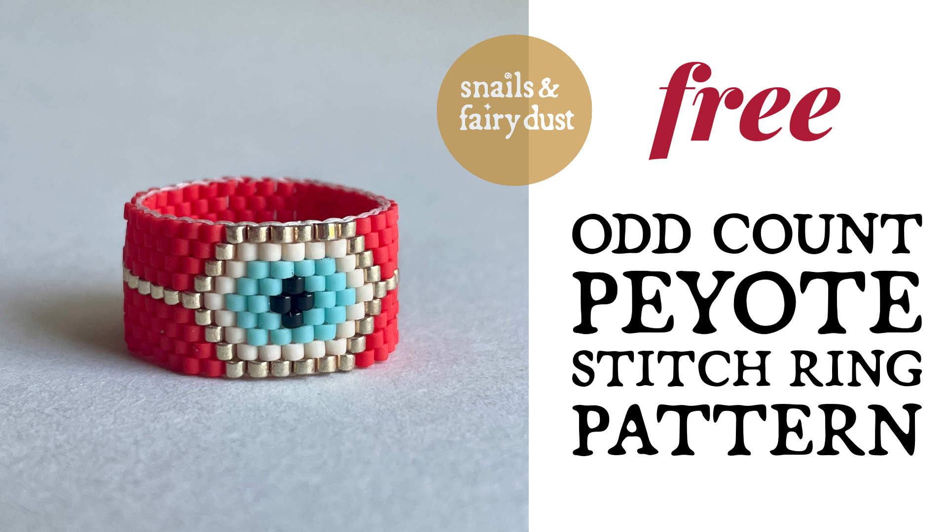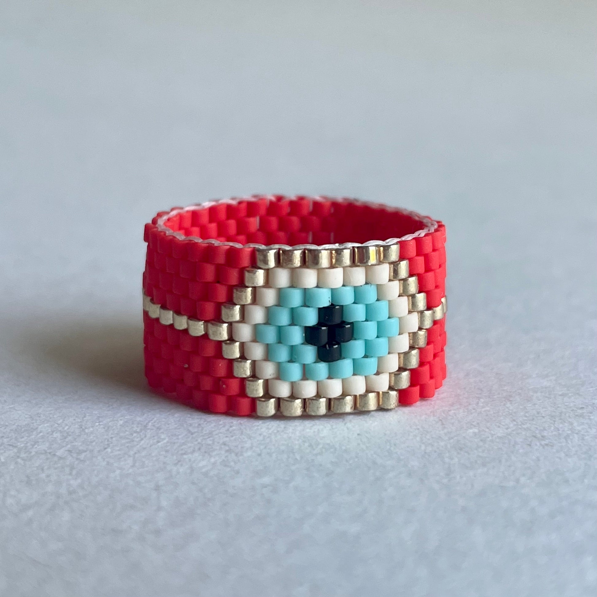 With this purchase, you will receive a free beading pattern of my odd count peyote stitch beaded ring called Protective Eye.