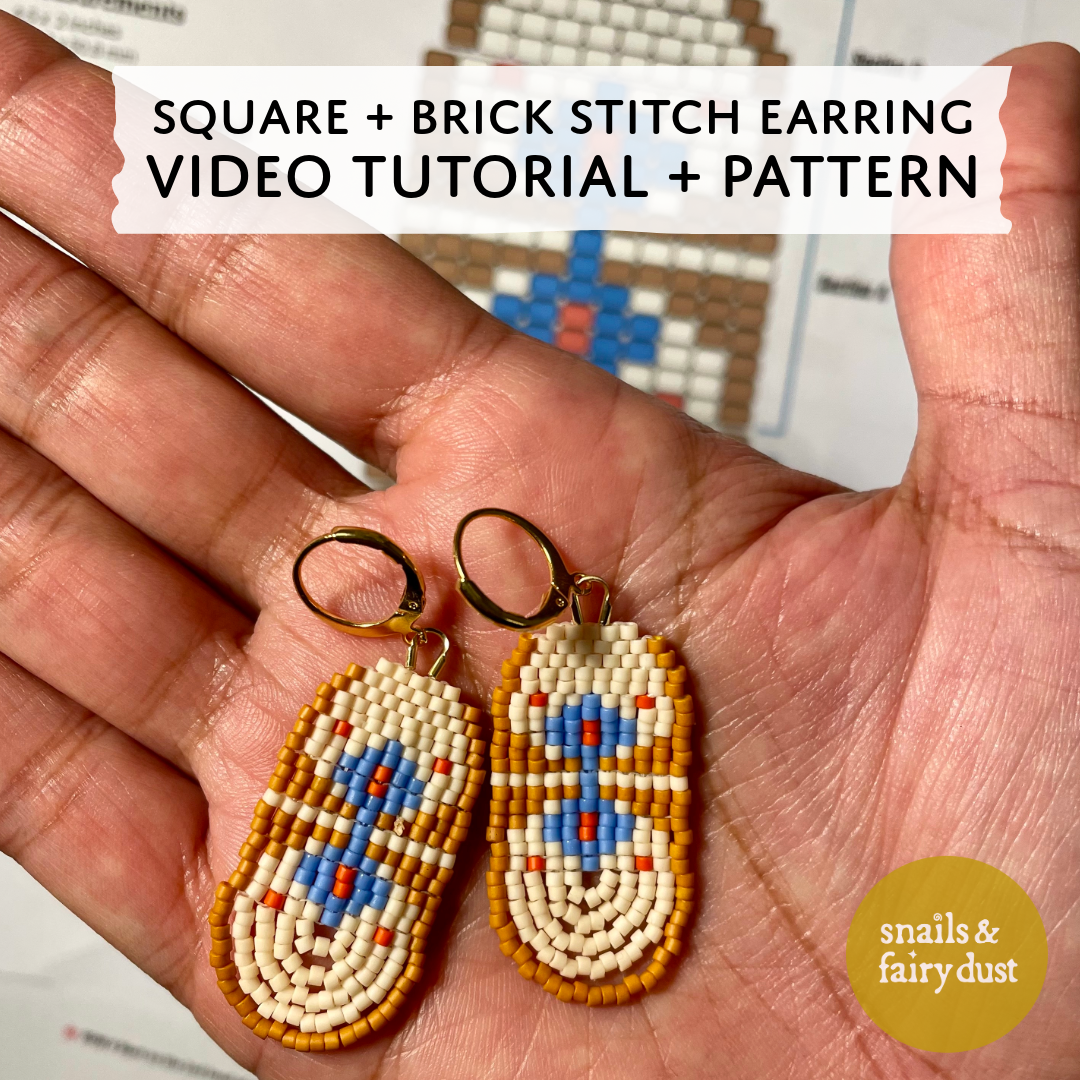 Square + Brick Stitch Earring Video Tutorial and Pattern