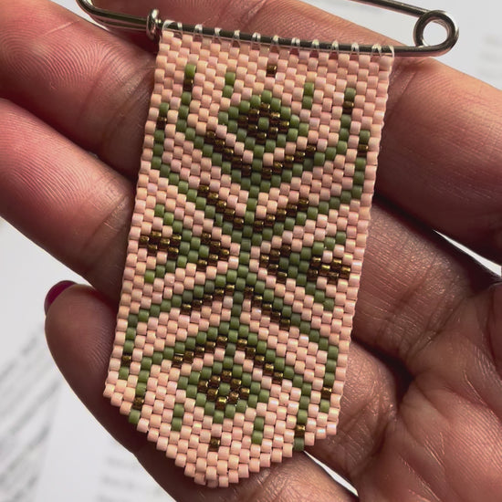 This listing is for a digital pattern of my original peyote stitch beaded charm pin called Undergrowth.