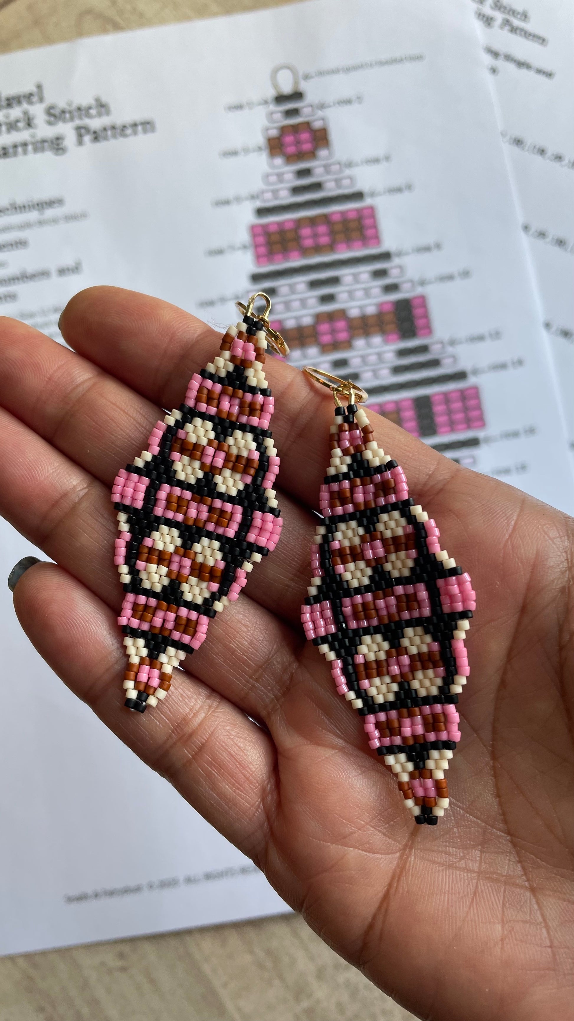 This listing is for a digital pattern of my original brick stitch earring design called Clavel..