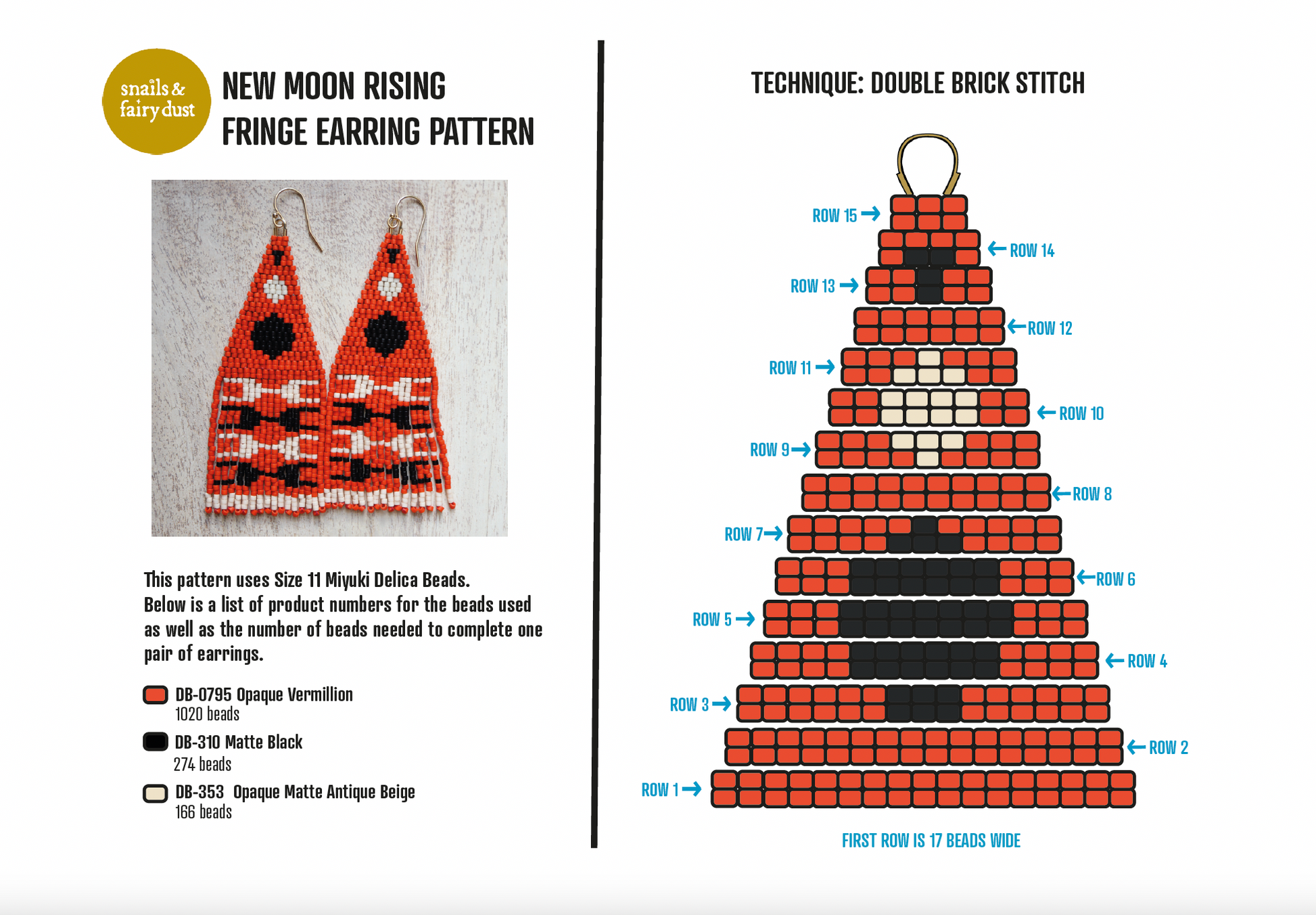The pattern sheets include a supply list, the exact bead count needed, and the product numbers for the specific size 11 Delica beads used in the design.