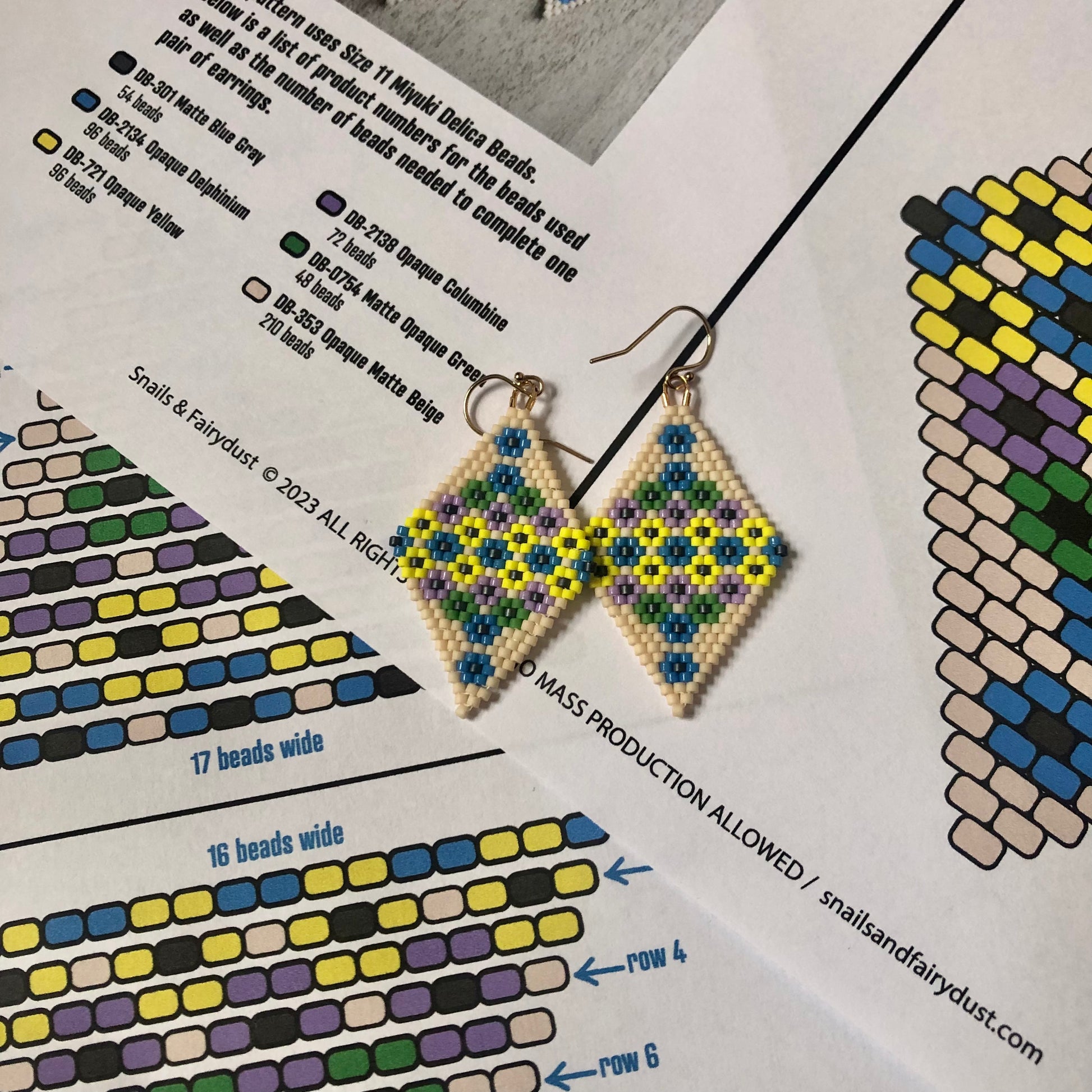 Flower Fields Spring Diamond Earrings Pattern - Digital Download