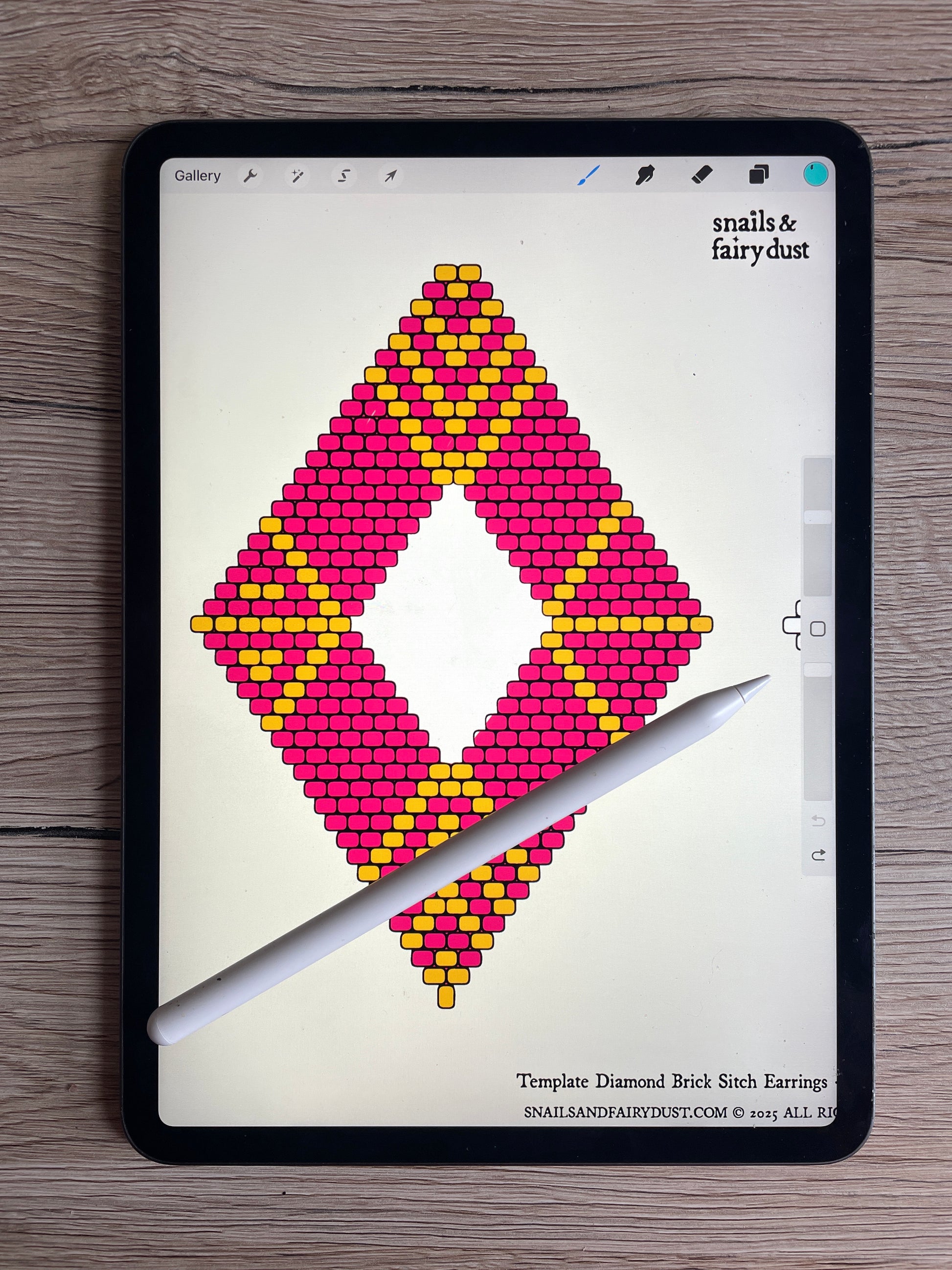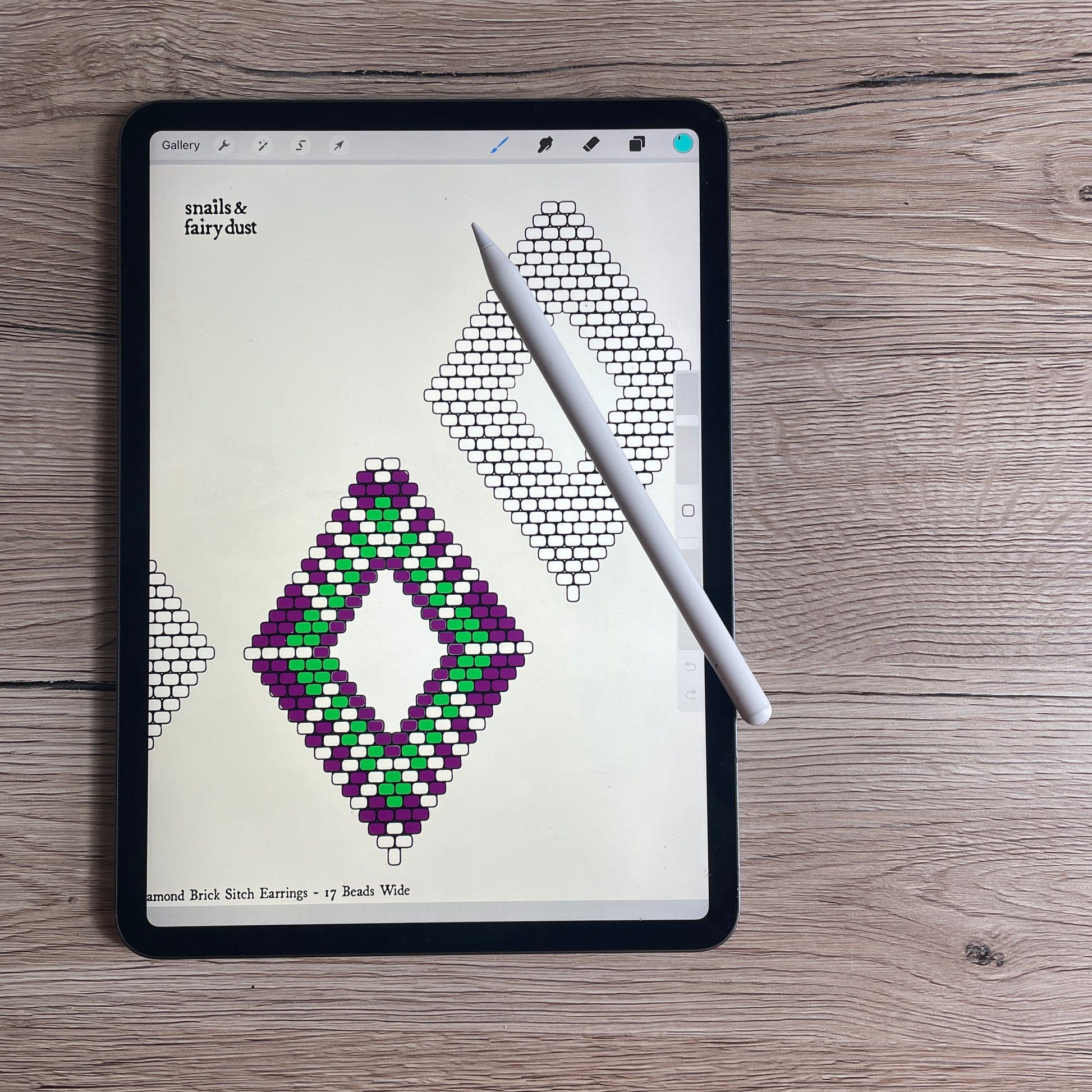 This listing is for an instant digital download of 4 brick-stitch beading templates. The files have been designed for use with the Procreate app and can also be printed for coloring by hand with markers or pencils.