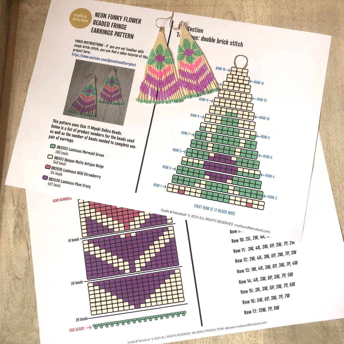 This pattern is for personal use only. Please do not sell, distribute or copy this pattern. Finished beadwork may be sold, but you must credit Snails & Fairy Dust for the design. Mass Production is not allowed.