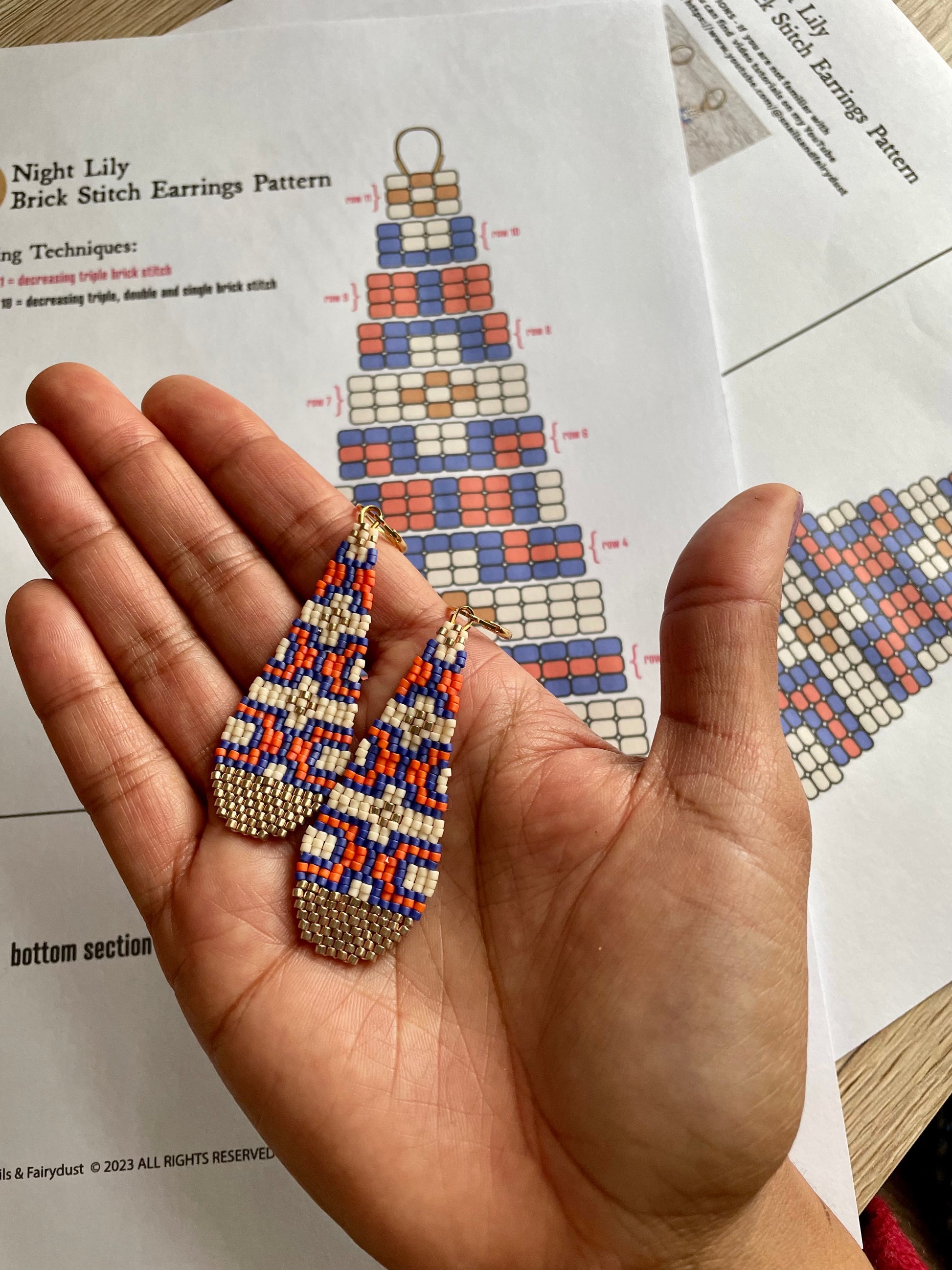 This listing is for a digital pattern of my original brick stitch beaded earring pattern called Night Lily.