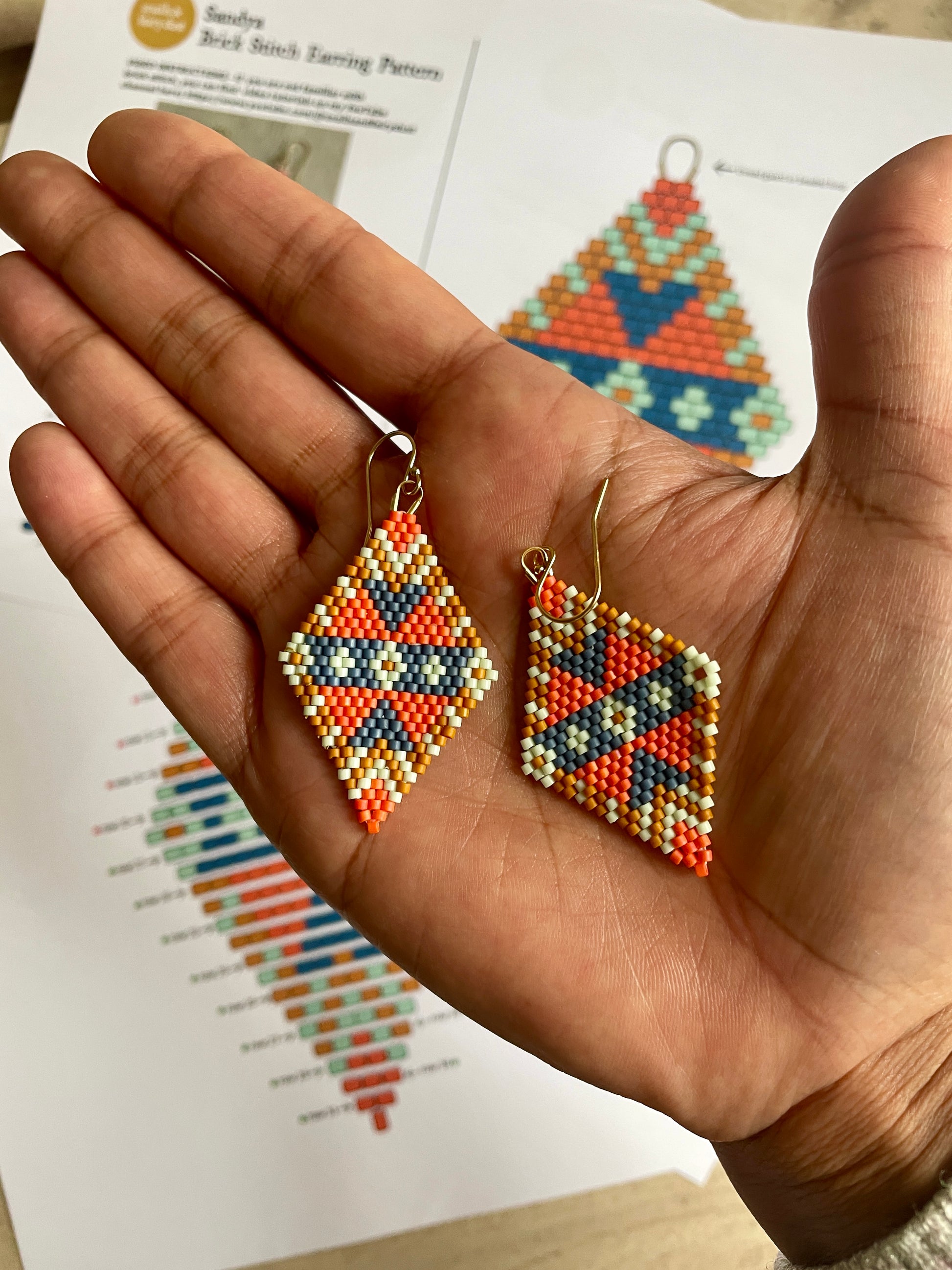 This listing is for a digital pattern of my original brick stitch earring design called Sandya.